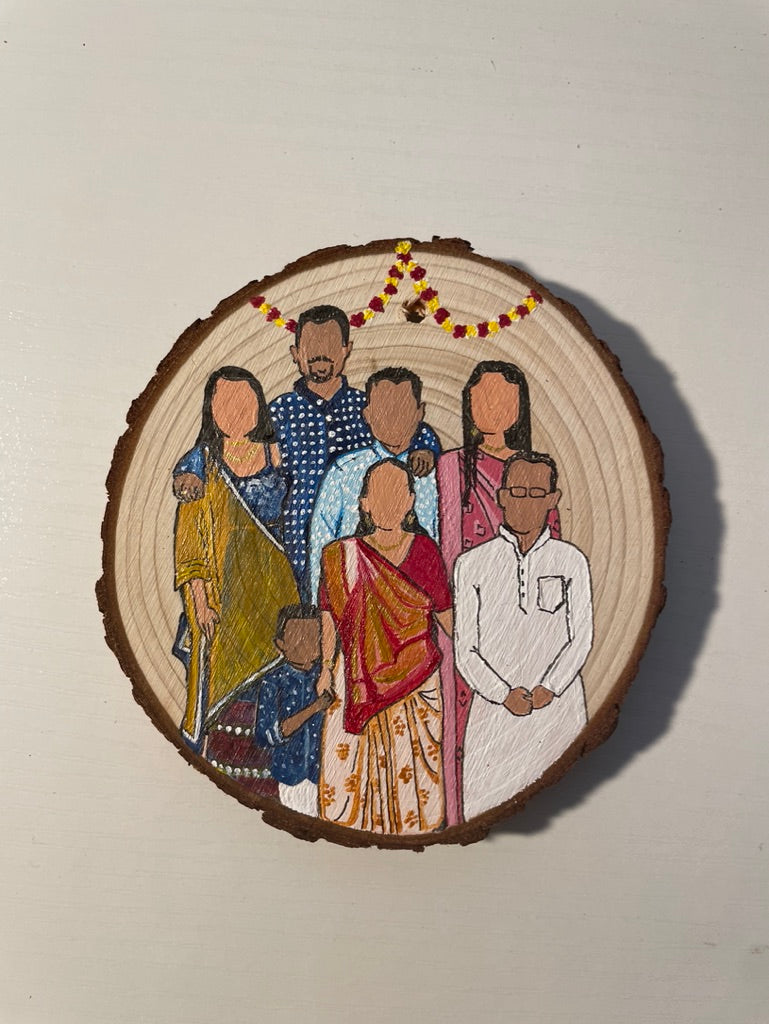 Custom Wooden Ornament Faceless Family Portrait (3.5x4 in)
